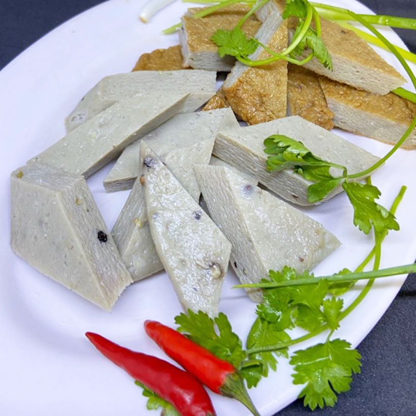 Chả cá đỏ củ nguyên miếng được hấp sẵn, đóng gói, hút chân không đảm bảo độ tươi ngon, không nhiễm vi sinh vật làm giảm chất lượng chả cá