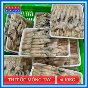 - Tại Sài Thành Foods thịt ốc móng tay được bóc vỏ tách thịt sẵn, làm sạch đóng khay và bán theo thùng tính theo 10kg. Giá có thể thay đổi theo thời giá hoặc theo quy cách đóng khay. Rất tiện lợi khi quý khách mua về chỉ cần rã đông và chế biến thành những món ăn ưa thích.